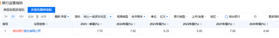 从上图数据来看,该行近五年核心一级资本充足率有两年都处在低于8%水平。其中2021年为7.88%,在此后的2022年有所回升,至8.85%。随后近两年时间持续下降。截止今年一季度末,烟台银行的核心一级资本充足率下滑至7.7%,接近监管红线7.5%。