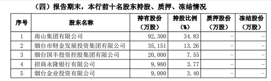 值得注意的是,第一大股东南山集团34.83%的持股比例,远超《关于加强中小商业银行主要股东资格审核的通知》中“主要股东持股比例一般不超过20%”的监管导向。